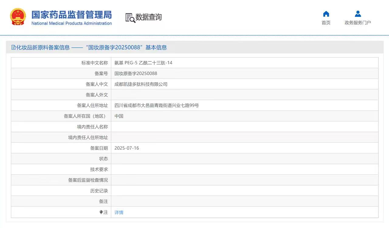 7月,氨基PEG-5乙酰二十三肽-14(國(guó)妝原備字20250088)