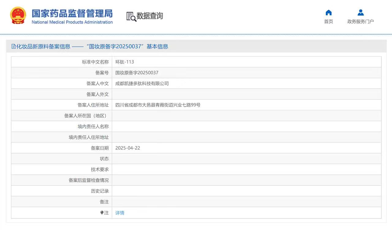 4月,環(huán)肽-113(國(guó)妝原備字20250037)