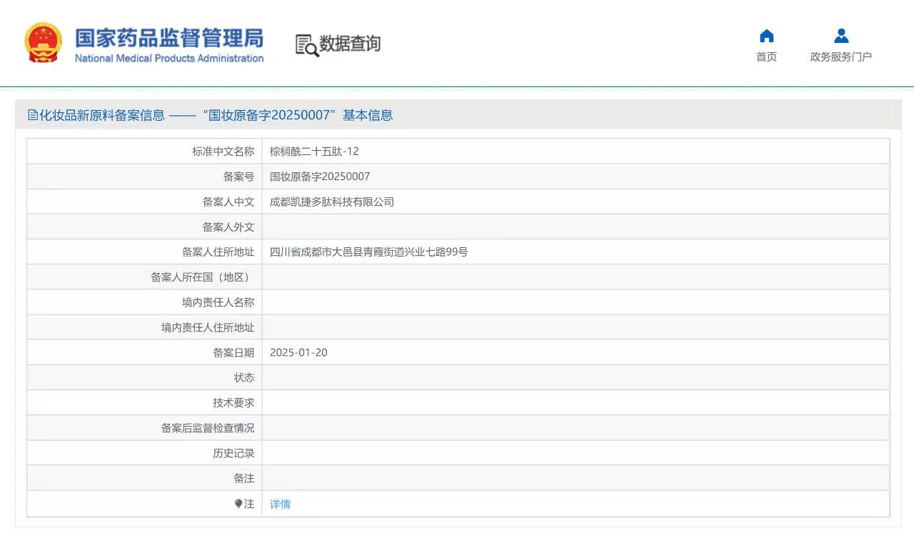 1月,棕櫚酰二十五肽-12(國(guó)妝原備字20250007)